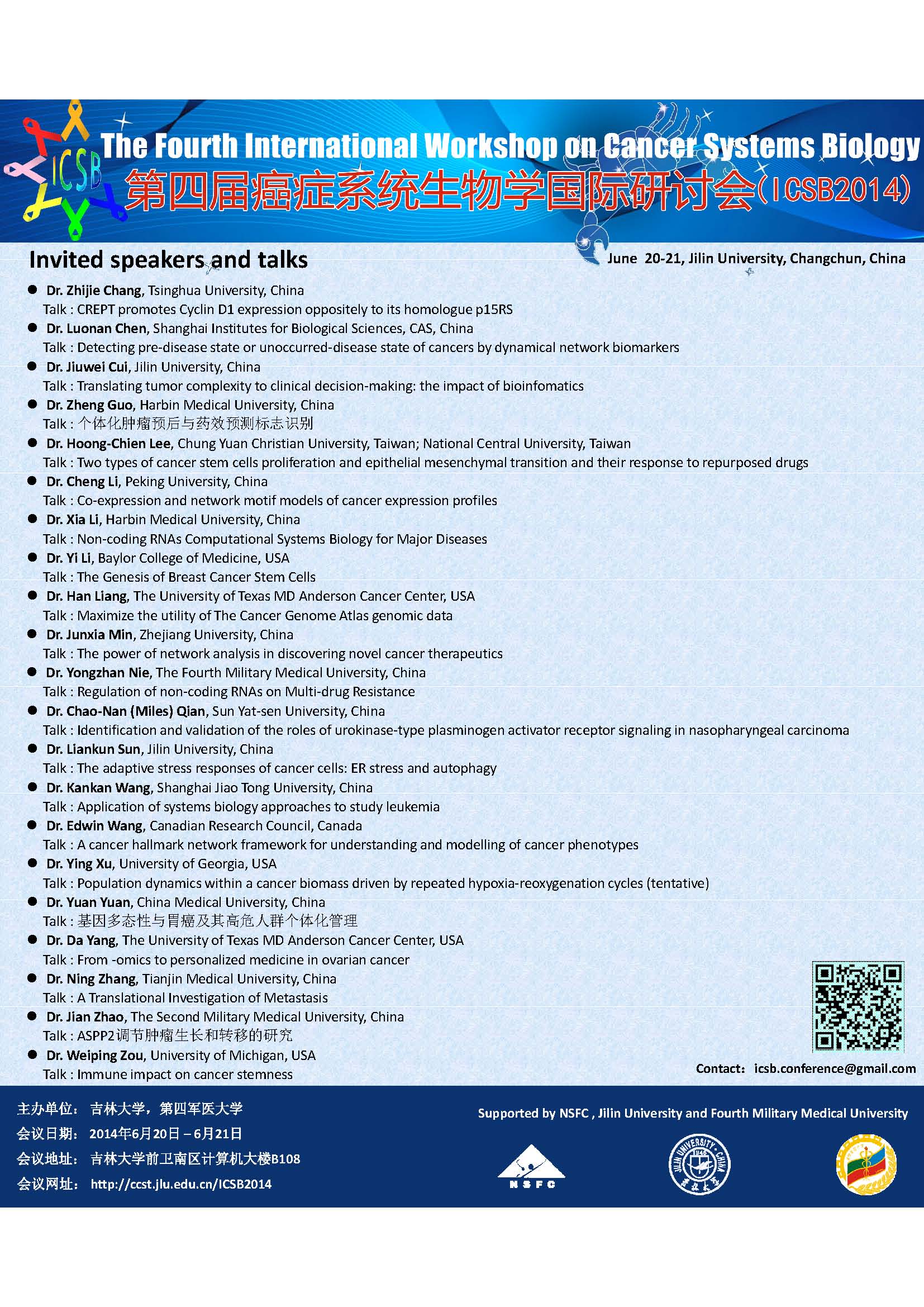 第四届癌症系统生物学国际研讨会(ICSB2014)