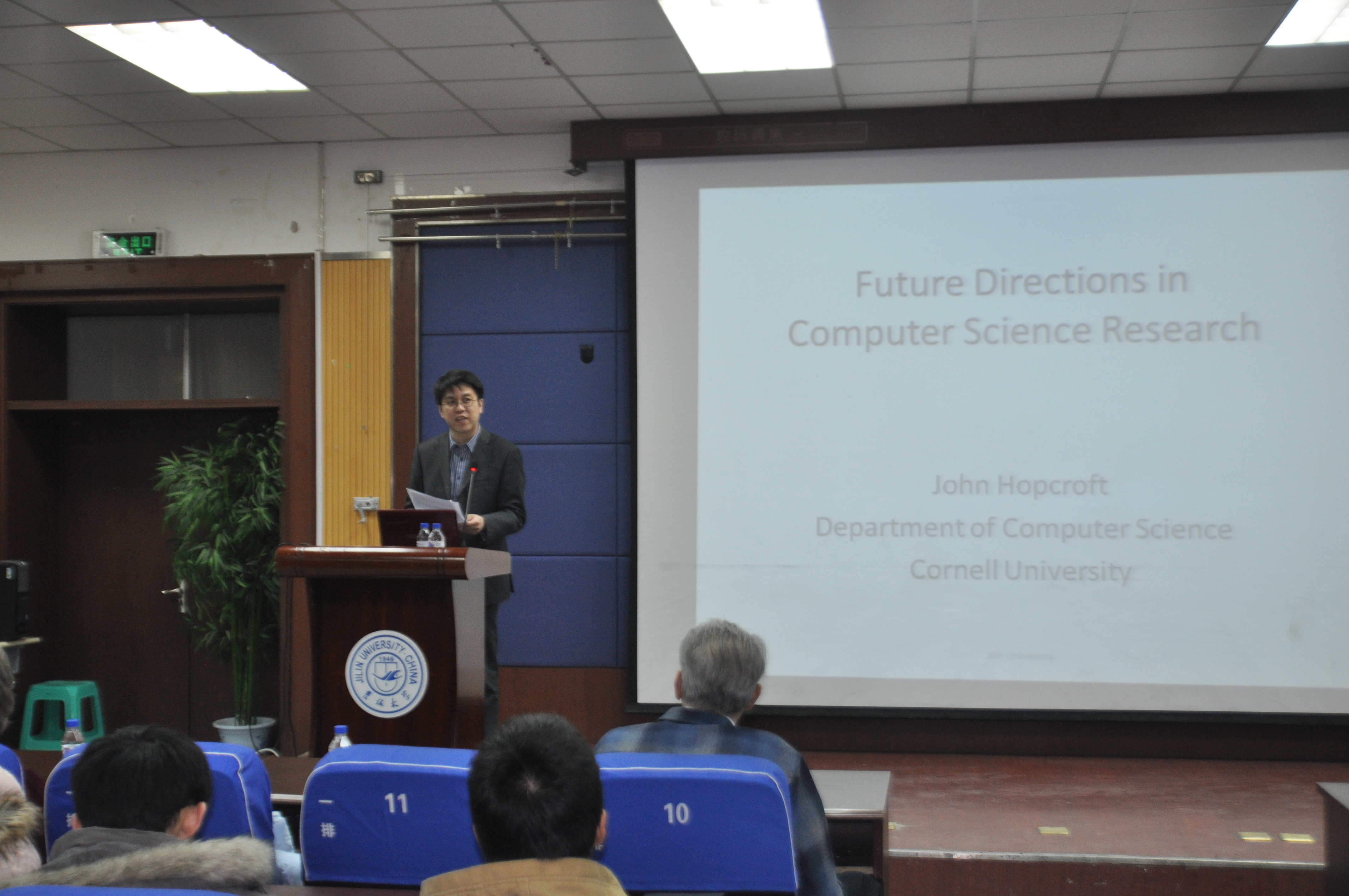 非常荣幸的邀请到图灵奖获得者、美国康奈尔大学教授John Hopcroft教授为我校学生做题为“Future Directions in Computer Science Research”的学术讲座,讲座由魏晓辉院长主持。