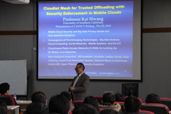 院长魏晓辉教授的邀请,美国南加州大学电气工程与计算机科学系黄铠教授来校进行学术访问与交流,并做题为“移动云计算中的信任转移安全基础设施”的报告。