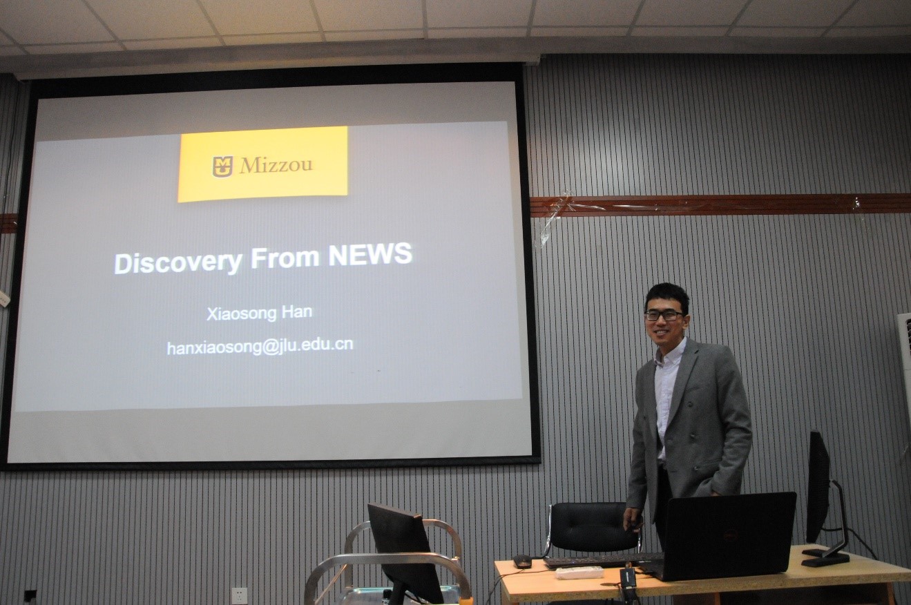 计算机学院韩霄松老师在计算机学院做了题为“基于新闻的大数据挖掘”的学术报告。报告主要介绍了韩霄松老师在美国访问学者期间取得的一系列关于新闻大数据挖掘的研究成果。报告中,韩霄松老师首先介绍了研究动因和新闻大数据的数据来源,然后重点介绍了利用这些数据做的两方面工作。首先是利用深度学习网络对疾病关注度趋势进行预测,并用可视化工具将疾病与关注度之间的关系进行了展示。另一项工作是结合情感分析技术,分析相关的新闻大数据对热点人物进行分析评价。并通过评价时间轴的波动情况进行新闻数据回溯,验证评价准确性。