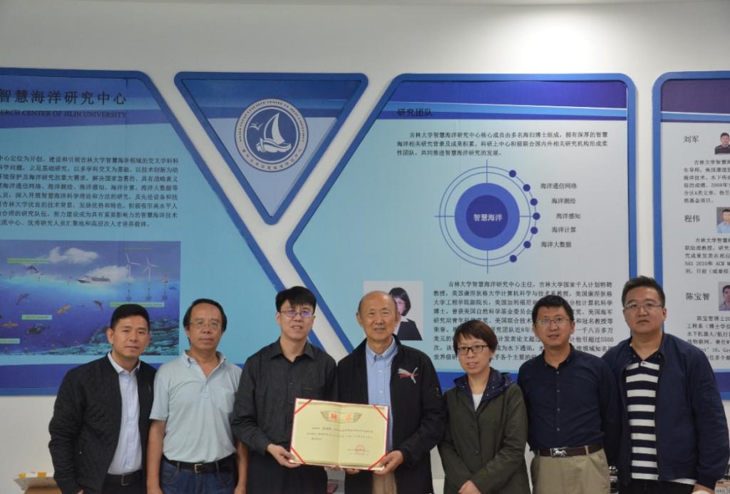智慧海洋研究中心聘请黄建国教授为高级顾问和学术委员会委员,分别由计算机学院魏晓辉院长和李文辉副院长为黄教授颁发了高级顾问与学术委员会的聘书。