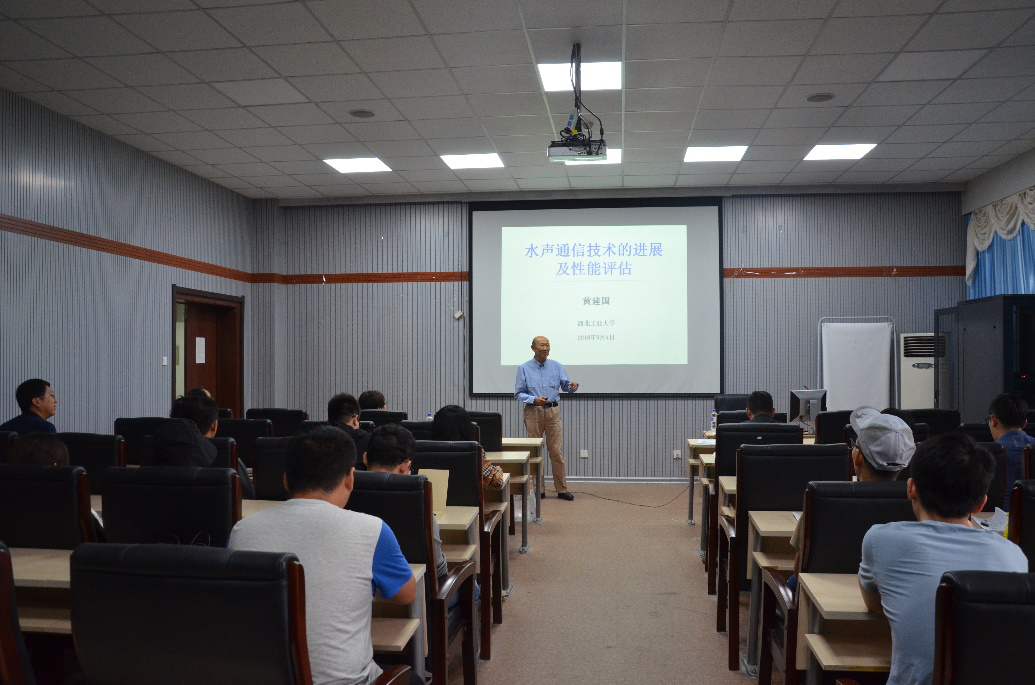在本次报告中,黄建国教授从可实现水下通信的物理场及其特点的基本知识入手,由浅入深的为在场同学详细讲解了水声世界的科学图谱,并着重介绍了以声场实现水下通信的水声通信的高端技术。报告首先分析了水下声信道的特点以及客服其难点的技术路线,给出了当前水声通信的主要研究领域及目前所采用的通信技术。而后,给出了评价中近程水声通信系统的性能水平及潜力,并汇总世界水声技术参数形成评价指标。此外,报告还给出了黄建国教授所带领的课题组进行水声通信研究及湖海实验所取得的部分成果。本次报告,受到了广大师生的热烈响应。两个多小时的学术报告让大家拓宽了视野,增长了见识,对水声通信有了进一步的了解。