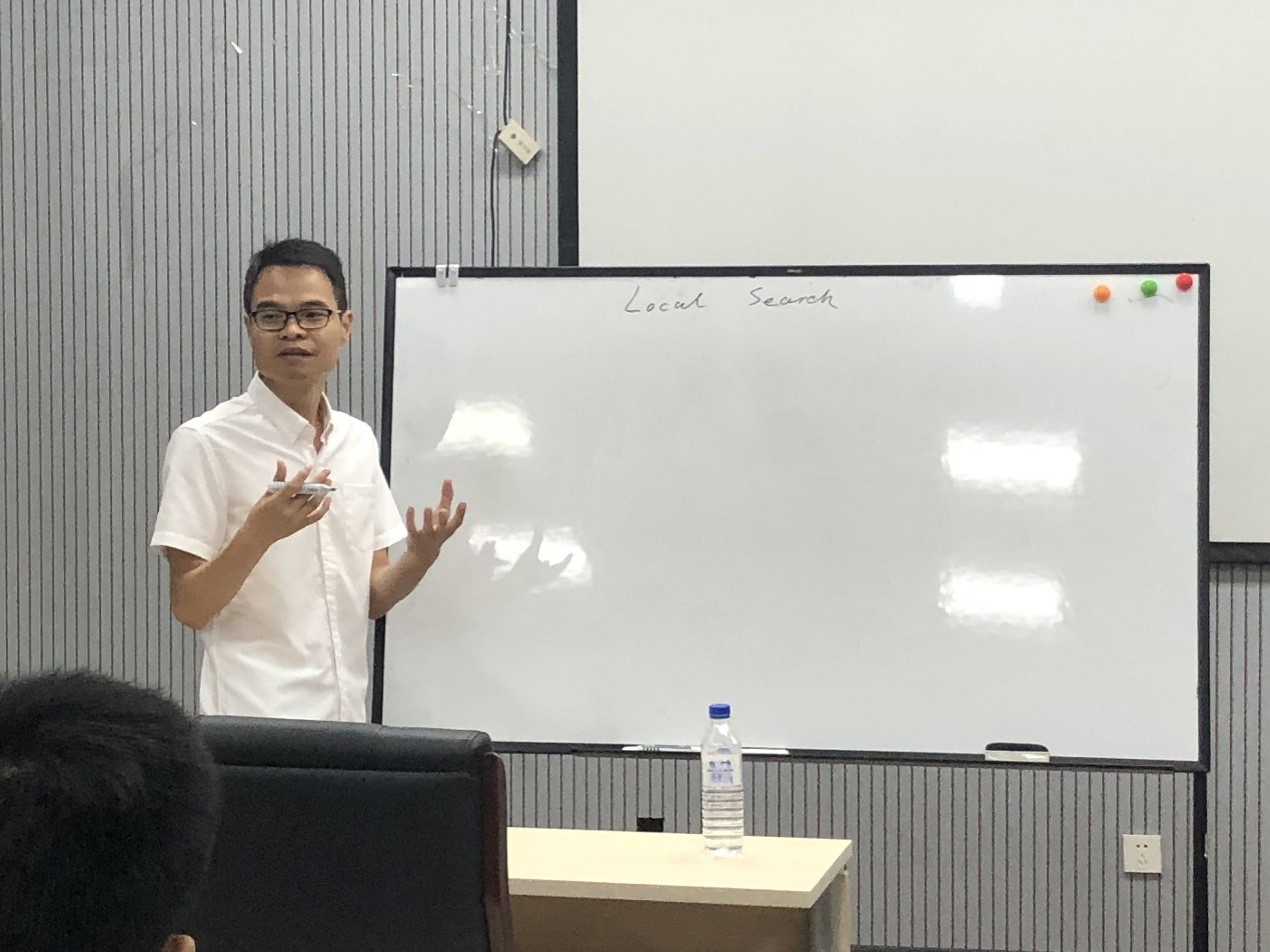 计算机楼A521报告厅做了题为“局部搜索:基础与方法”的报告。蔡少伟中科院软件所计算机科学国家重点实验室研究员。于2012年毕业于北京大学计算机软件与理论专业,获博士学位,于2014年毕业于Griffith大学IIIS研究所,获博士学位。主要研究方向为NP难组合优化问题求解,逻辑问题的算法,以及自动算法工程。发表论文50余篇,以一作/通讯作者在CCF A类期刊和会议发表论文20多篇,在命题逻辑可满足性问题(SAT)和最大可满足性问题(MaxSAT)国际比赛中多次获得冠军。多年担任人工智能顶级会议IJCAI和AAAI的PC member,任SCI期刊Frontiers of Computer Science的Young Associate Editor。