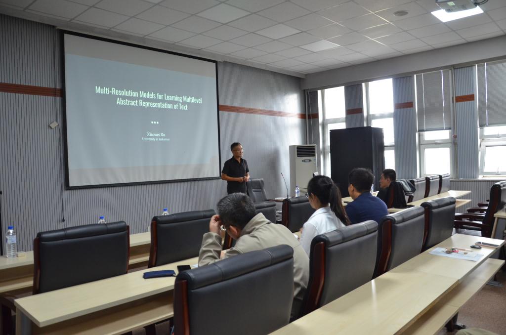 邀请,在计算机楼A521报告厅作了题为“Multi-Resolution Models for Learning Multilevel Abstract Representations of Text”的学术报告。