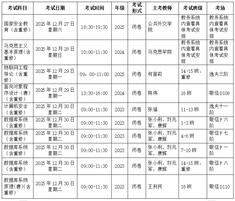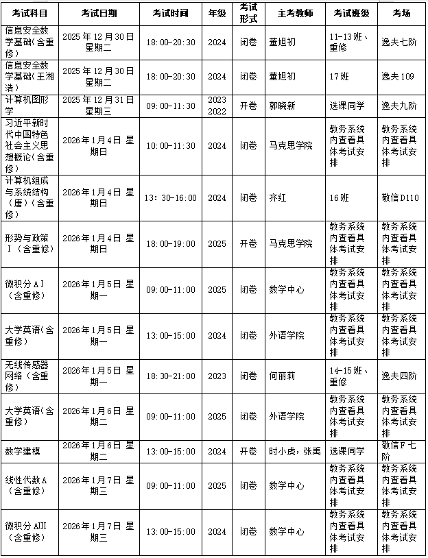 公共课的考试安排以学校通知及教务系统为准,请同学们及时查看(//iedu.zwgc.org/)。