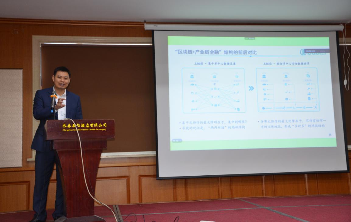 等单位邀请,在君怡酒店一楼会议室作了题为“区块链赋能数字化产业链金融”的学术报告。
