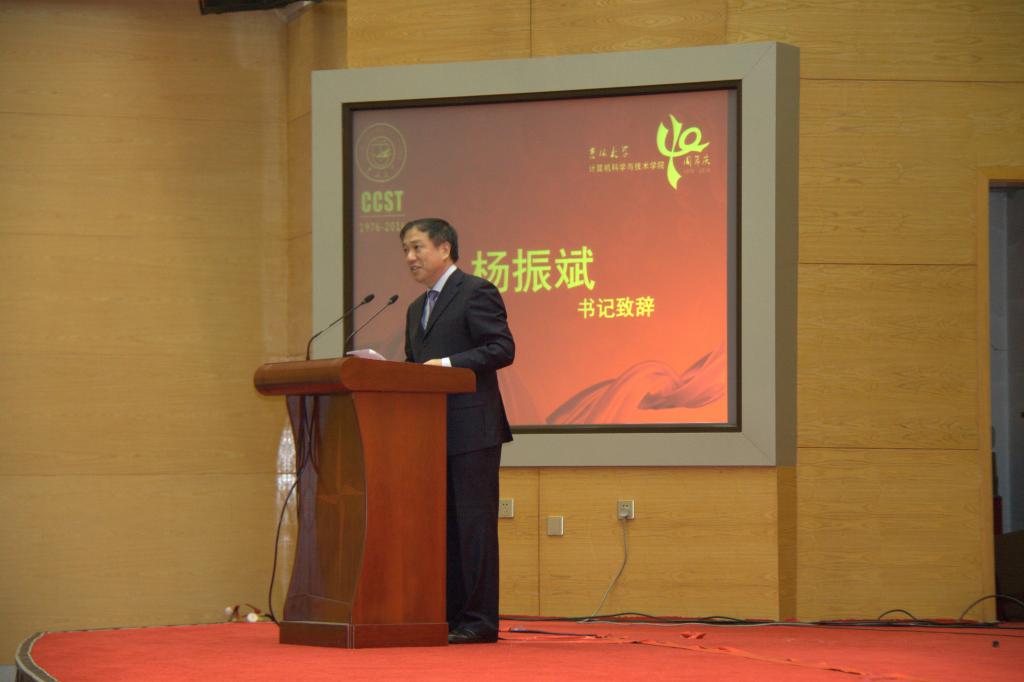 党委书记杨振斌致辞。他代表学校和校长李元元院士向计算机学院全体师生及海内外校友表示热烈祝贺,向各位来宾表示诚挚的欢迎。对王湘浩教授创建自慰高潮