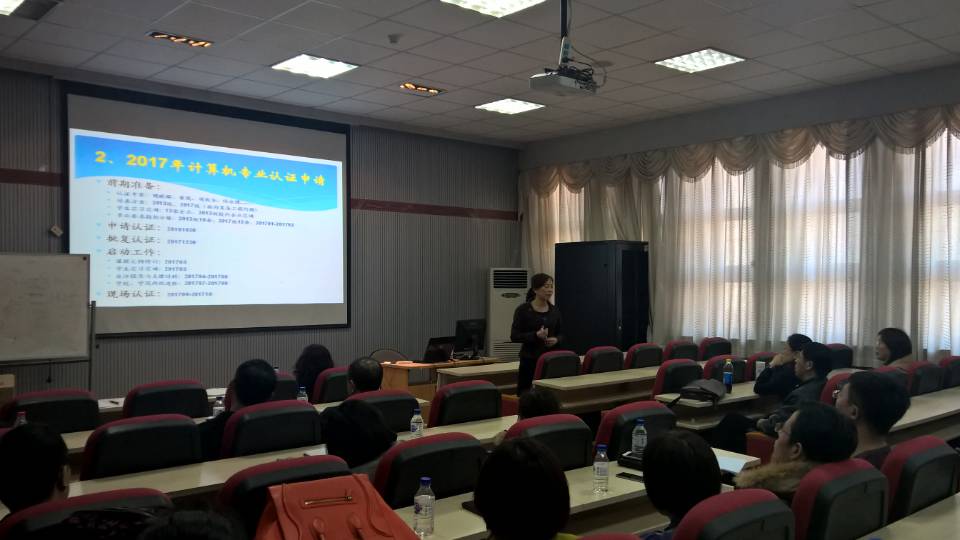 本科教学审核评估评建工作先进集体”,黄岚教授向全院师生表示感谢和祝贺。然后,黄岚教授对2017版培养方案进行了说明。在计算机大类专业2017版培养方案中,总学分将降低到168学分,而选修课比例及专业实践课学分比例将明显增加,体现合并关联课程、减少课内学时、增加动手实践的改革思路。新的课程体系将支撑起计算机大类专业的新的培养目标,特别是“具有创新精神、实践能力和国际视野”、“具有利用计算机技术解决复杂工程问题的科学素养和创新能力”等新增目标。其后,与会教师针对2017版培养方案初稿展开了热烈的讨论,对课程体系、课程安排等表达了各自的想法,为新版培养方案献计献策。最后,黄岚教授介绍了下一阶段的专业认证、本科毕业论文等工作的启动情况。