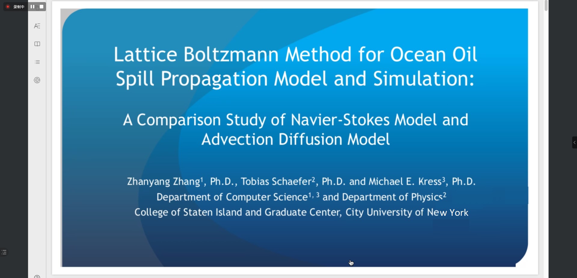 邀请,为我院师生做了题为“Using Lattice Boltzmann Method for Ocean Oil Spill Model and Simulation”的线上学术讲座。