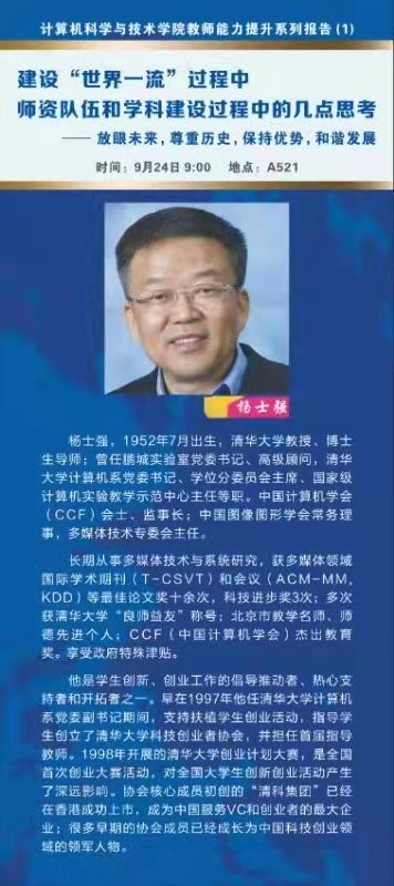 中心校区计算机楼A521报告厅作了题为“建设‘世界一流’过程中师资队伍和学科建设过程中的几点思考”的专题报告,这是计算机学科教师能力提升系列报告的首场报告,报告由自慰高潮