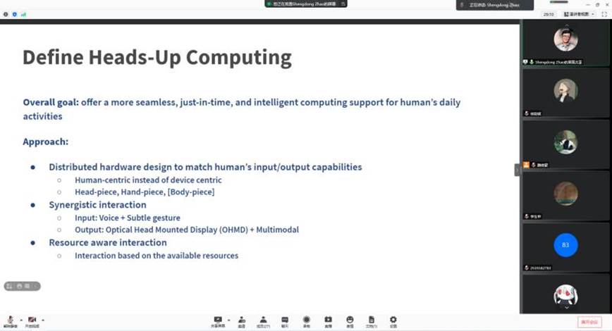 邀请,为我院师生作了题为“Heads-Up Computing: Moving beyond the Device-Centered Paradigm”的线上学术讲座。