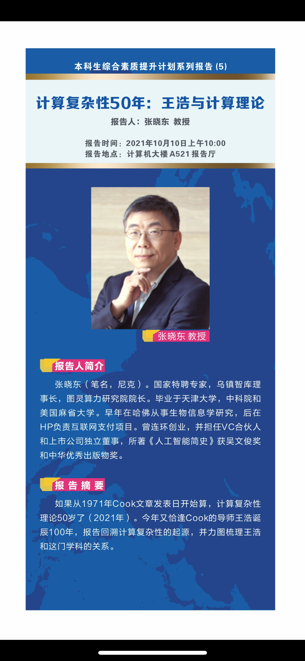 本科生培养和素质提升的重要组成部分,后续将继续举办其他本科生综合素质提升计划系列报告。