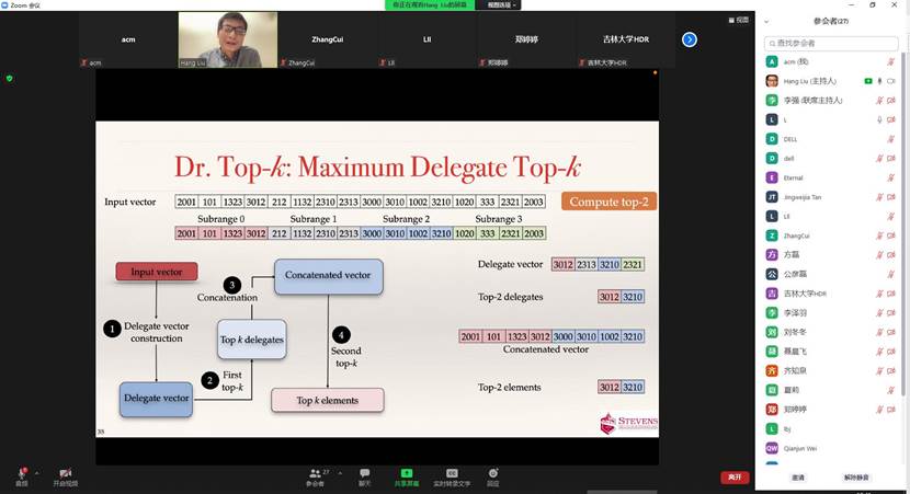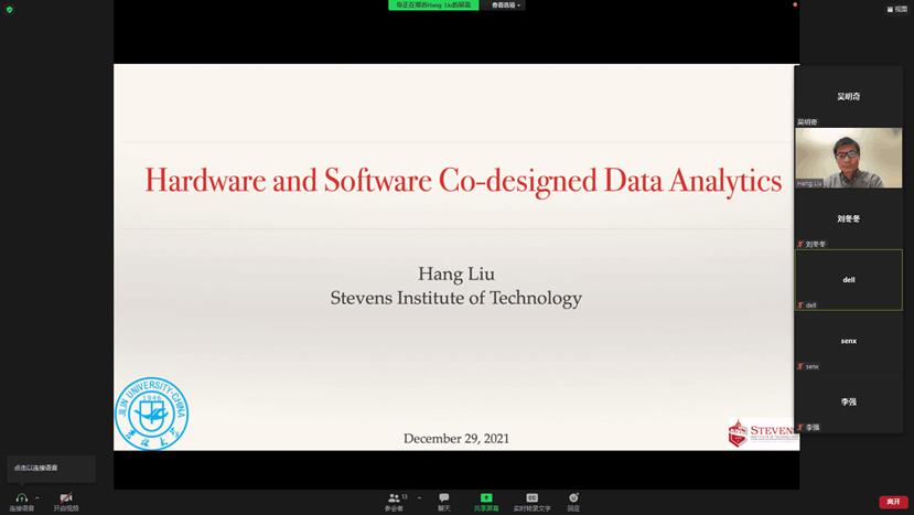 邀请,在Zoom会议作了题为”Algorithm and System Co-Optimized Big Data Analytics”的学术讲座,此次讲座由自慰高潮