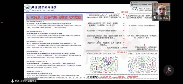 在本次报告中,彭浩老师面向社会网络信息空间大数据,由浅入深地介绍了在社交网络数据语义表征计算和社会事件检测方面的研究和系统进展,内容涵盖了增量表示学习、社会事件建模、小样本事件检测、强化图神经网络、增强流式密度聚类等方面关键技术。最后,彭老师悉心地回答老师和同学们的提问,受到了广大师生的热烈响应。