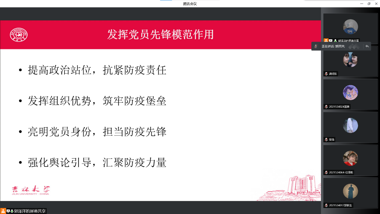 硕士研究生第二党支部以“奋勇‘党’先,‘疫’不容辞”为主题并扩大到专硕两班班会开展了党日活动。