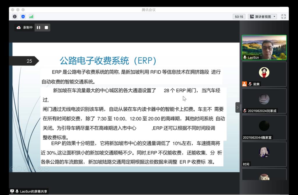 邀请,利用腾讯会议作了题为“都市交通体系建设及其信息化经验”的学术报告。