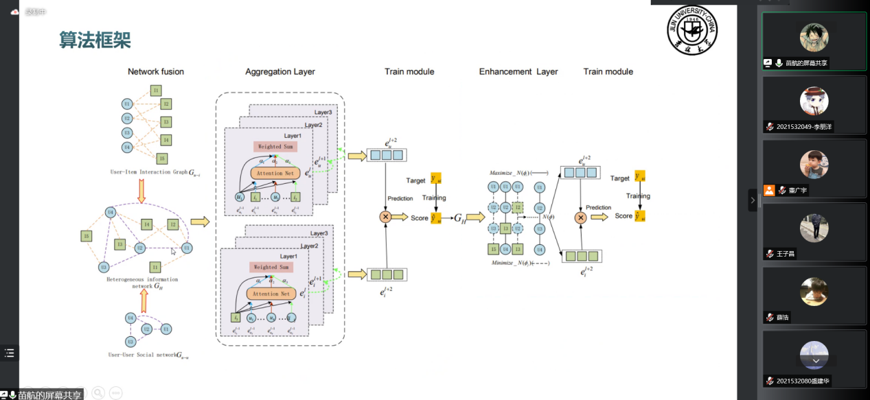 本期邀请了2019级硕士生苗航和张梦玺进行学术分享。他们分享的主题分别是“推荐系统”和“Github社区信息挖掘”。本次沙龙活动旨在通过学术分享,拓宽研究生学术视野,促进同学之间的科研交流。活动由自慰高潮