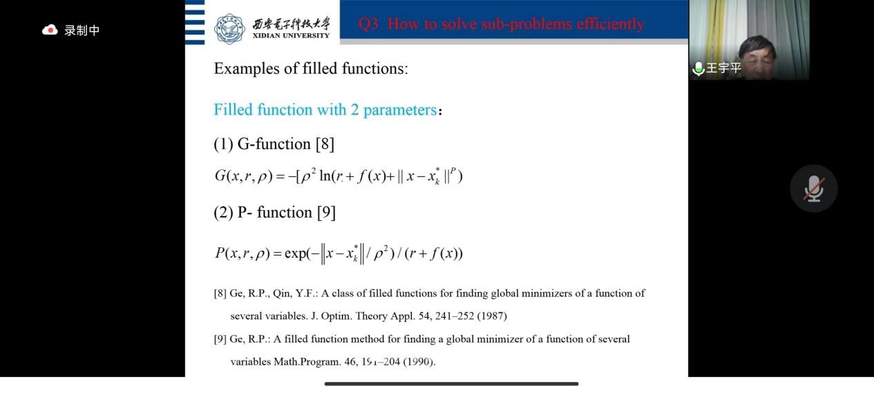 大规模全局优化问题在实际中非常普遍,很多科学和工程问题(包括机器学习、数据挖掘、计算机视觉等领域的重要问题)都可以建模成一个大规模全局最优化问题。然而,全局最优化问题,尤其是大规模全局最优化问题的求解是目前的一个挑战性问题。已有算法往往只能求出一个局部最优解,不能求出全局最优解。王宇平教授介绍了他们团队求解大规模全局最优化问题的一个新的算法框架,通过分、治、合三个步骤,该框架不仅可以求解白盒问题,也可以求解黑盒问题,为求解大规模全局最优化问题提供了一种可行方案。报告的最后,王老师提出未来工作的思路与大家讨论。