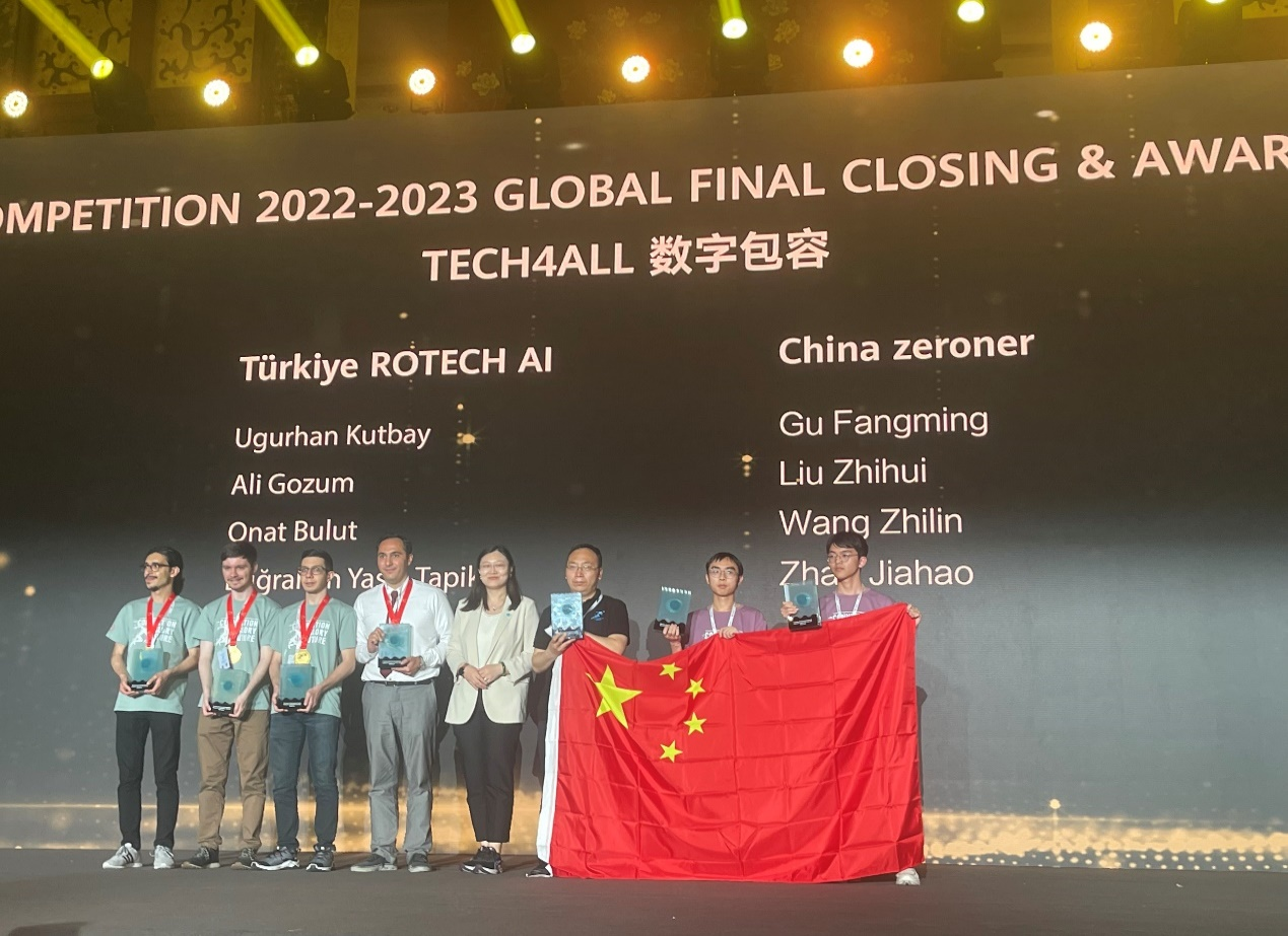 华为信息与网络技术学院的一贯大力支持下,团队积极向专家请教与咨询,进一步优化解决方案,持续打磨各项工作,精心准备现场答辩。最终,在5月25日全球总决赛中脱颖而出,以第一名获得“特等奖”,同时获得大赛特别奖“数字包容奖”!