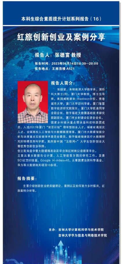 中心校区王湘浩楼A521报告厅作了题为“红旅创新创业及案例分享”的专场讲座,也是本科生综合素质提升计划系列报告第16场。讲座由自慰高潮