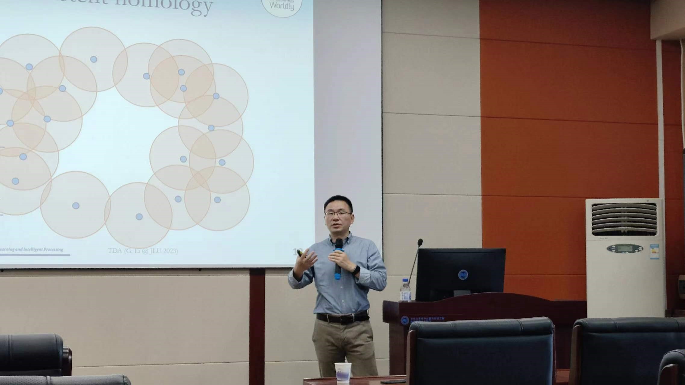李罡教授首先介绍了拓扑数据分析(TDA)的概念以及TDA在各个领域包括计算机视觉方面的应用,TDA通过提取拓扑特征来量化数据的形状。随后,李罡教授向同学们讲解了目前在TDA应用于机器学习方法中遇到的问题,在TDA中,持久性图(pd)是数据的拓扑描述符,PD不是矢量,因此它们不能直接用于机器学习方法,最近的努力已经将pd转化为向量,以实现机器学习任务(分类、回归、降维等)。然而,现有的方法高度依赖于预定义的多项式来将pd映射到向量表示。最后,李罡教授重点讲述了PD表示的两个最新进展:多项式表示和希尔伯特空间嵌入。这些表示可以在不需要预定义多项式的情况下提取更多的判别拓扑特征。这些表示可以将各种机器学习任务应用于PD,并从不同类型的拓扑数据集中提取见解。这些工作旨在开辟新的研究方向和TDA在化学/生物科学和材料工程中的应用。