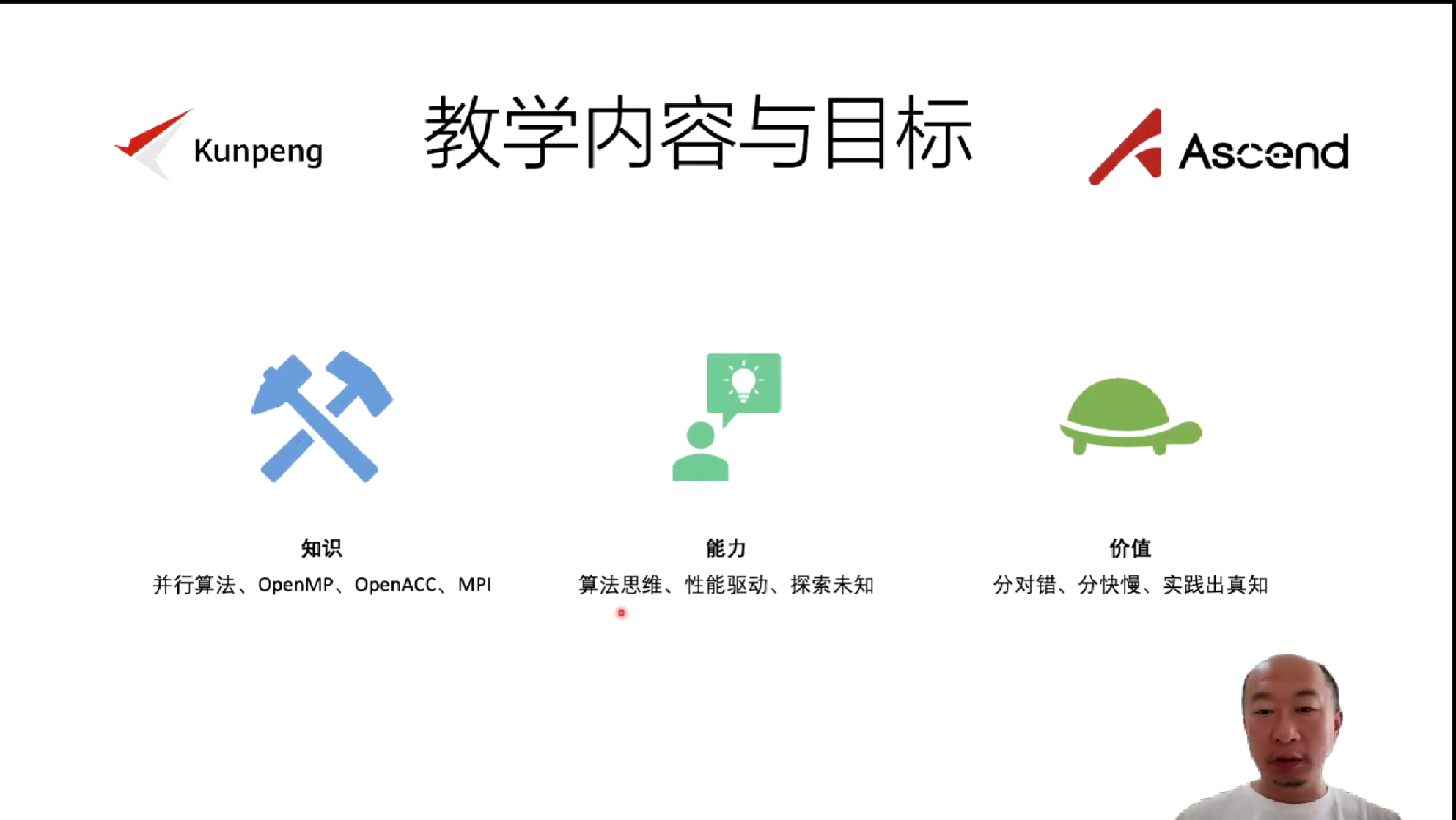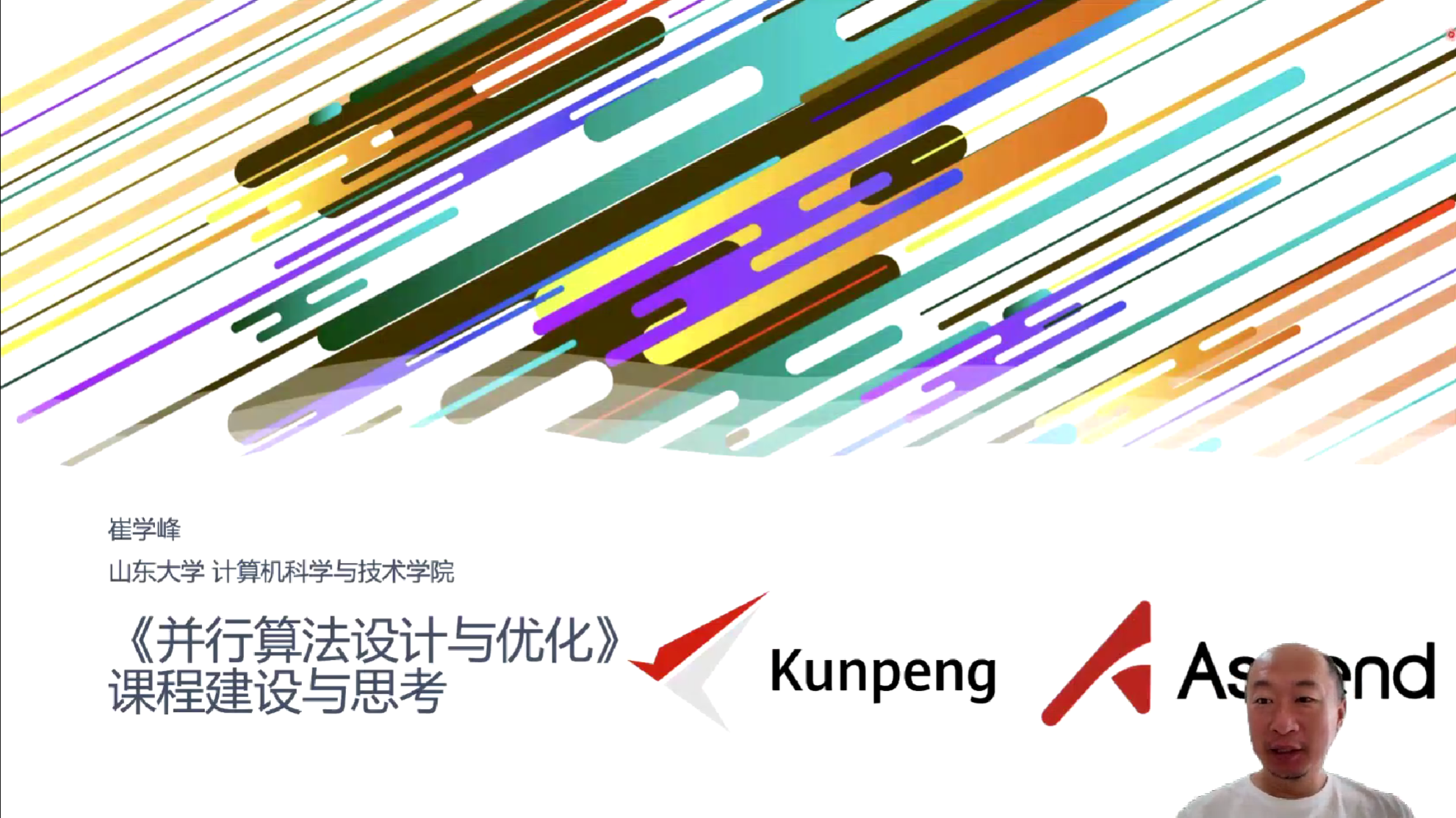 讲座开始后,崔学峰教授首先介绍了《并行算法设计与优化》这门课的起源,然后介绍了在准备这门课的过程中所面临的问题以及采取的方法。首先面临的挑战一为:如何运用人类的线性思维去理解并行发生的事件,对此崔学峰教授提到使用图解算法的方式进行讲解,以展示每个算法的具体过程,可以让学生更好地理解和记忆。第二个挑战为:学生缺乏自主创新的设计一个算法的能力,因此崔学峰教授提到教师应该将讲课重点放在讲述一个算法的设计思路上。第三个挑战为:学生经常将重点放在程序运行的正确性上,而忽略了程序运行的效率,因此在教学过程中要强调算法性能驱动的重要性。最后一个挑战为:对于串行算法,最优的计算复杂度约等于最快的执行速度,然而,在并行算法中理论性能并不等价于实际性能,那么如何理解这种无法消除的差异?对此崔学峰教授提到要去了解差异的来源是什么,要走出舒适圈,学习新知识。综上,崔学峰教授提到要训练学生不光知道算法的知识点是什么,还要了解算法之为是思维是什么。基于性能驱动去做编程,而不是说基于对错。同时要培养学生基于观察探索未知的能力。