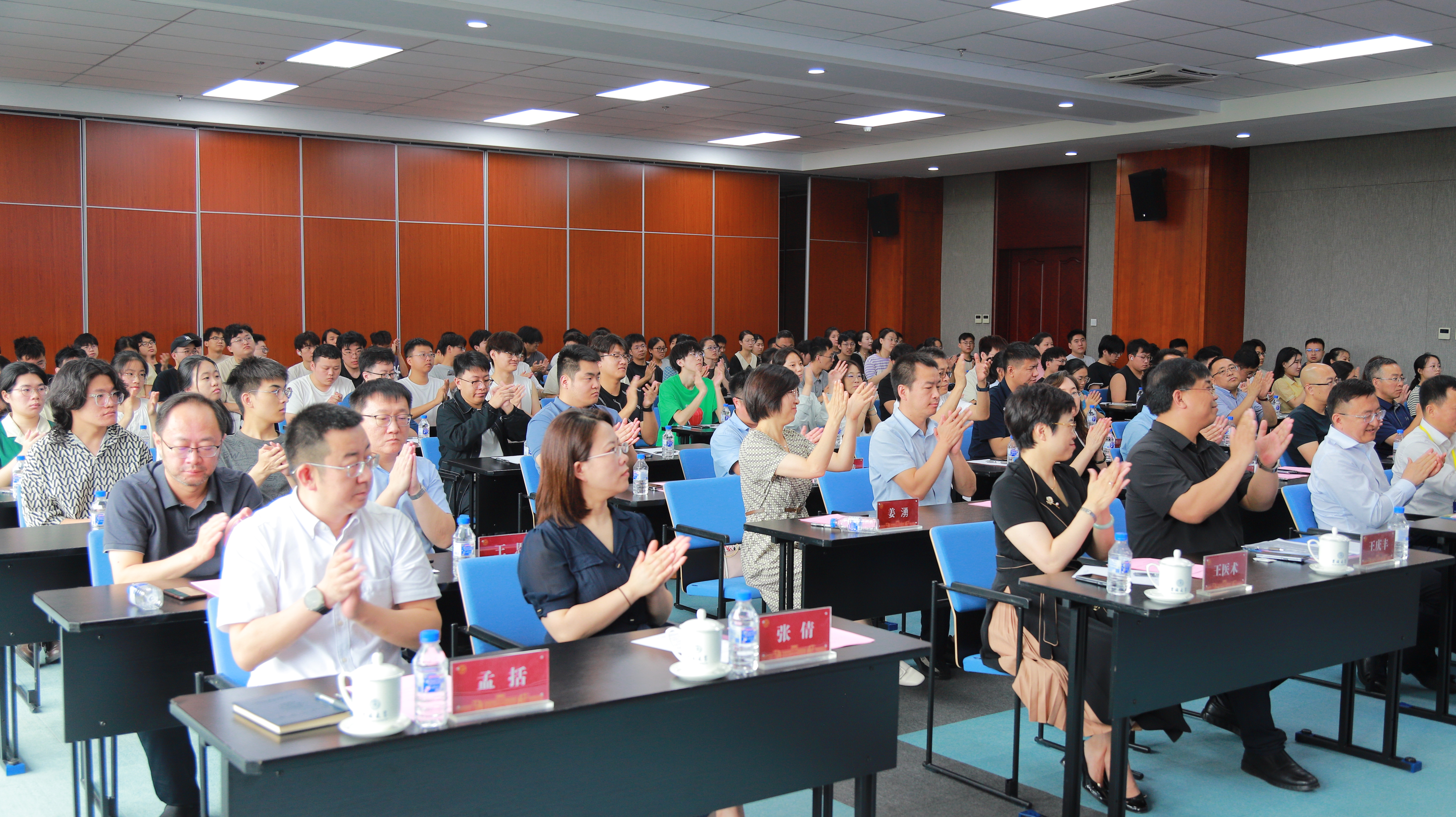以王湘浩院士命名,成立了“王湘浩人工智能虚拟教研室”。在全体人员的见证下,蔡立东和胡事民共同为王湘浩人工智能虚拟教研室揭牌。