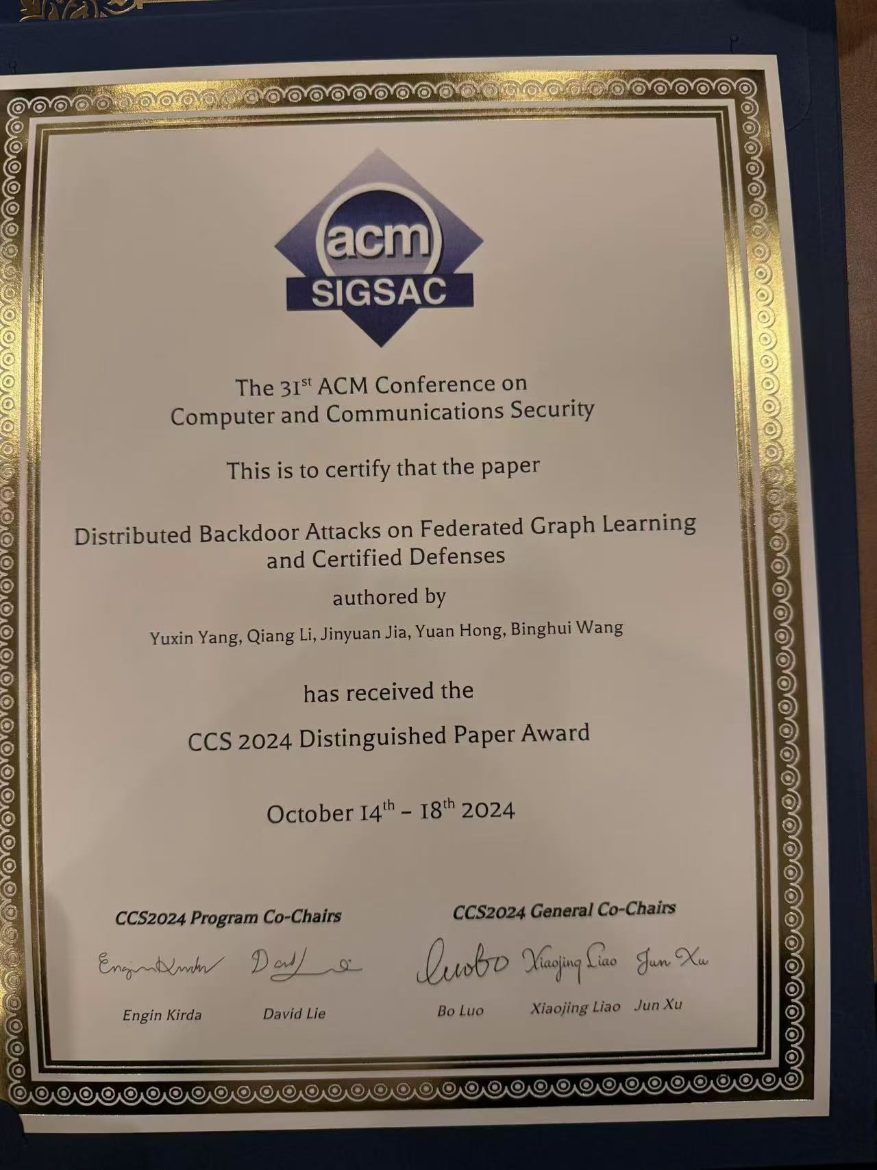 自慰高潮 2022级博士生杨雨欣获得ACM CCS 2024(ACM Conference on Computer and Communications Security)最佳论文奖。ACM CCS是国际上网络与信息安全的四大顶会之一,是CCF推荐A类会议。