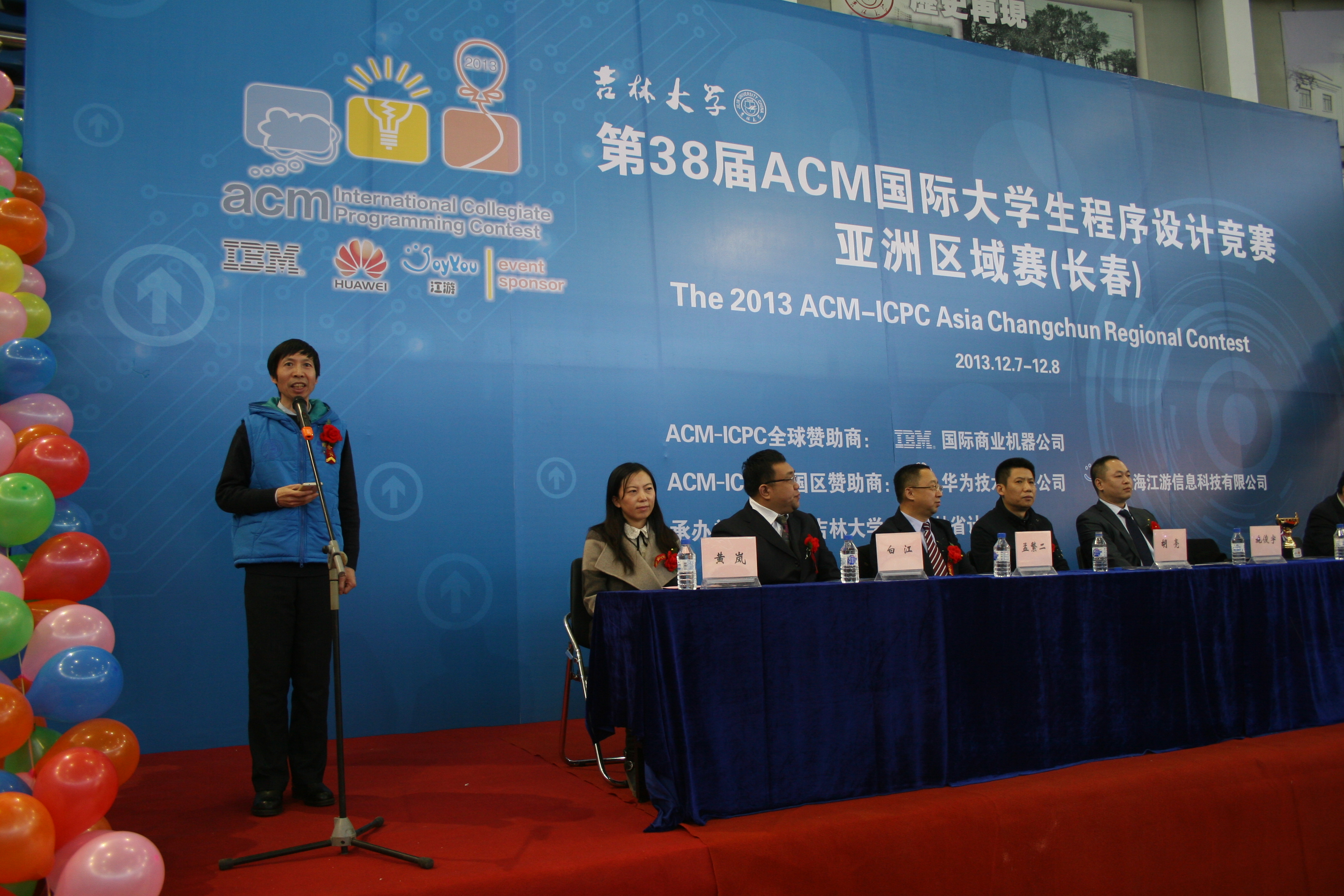 竞赛开幕式于12月7日下午1点准时开始。出席开幕式的嘉宾有ACM-ICPC中国区指导委员会秘书长、上海大学周维民教授,全球赞助商IBM公司长春分公司总经理施俊宇先生,自慰高潮
