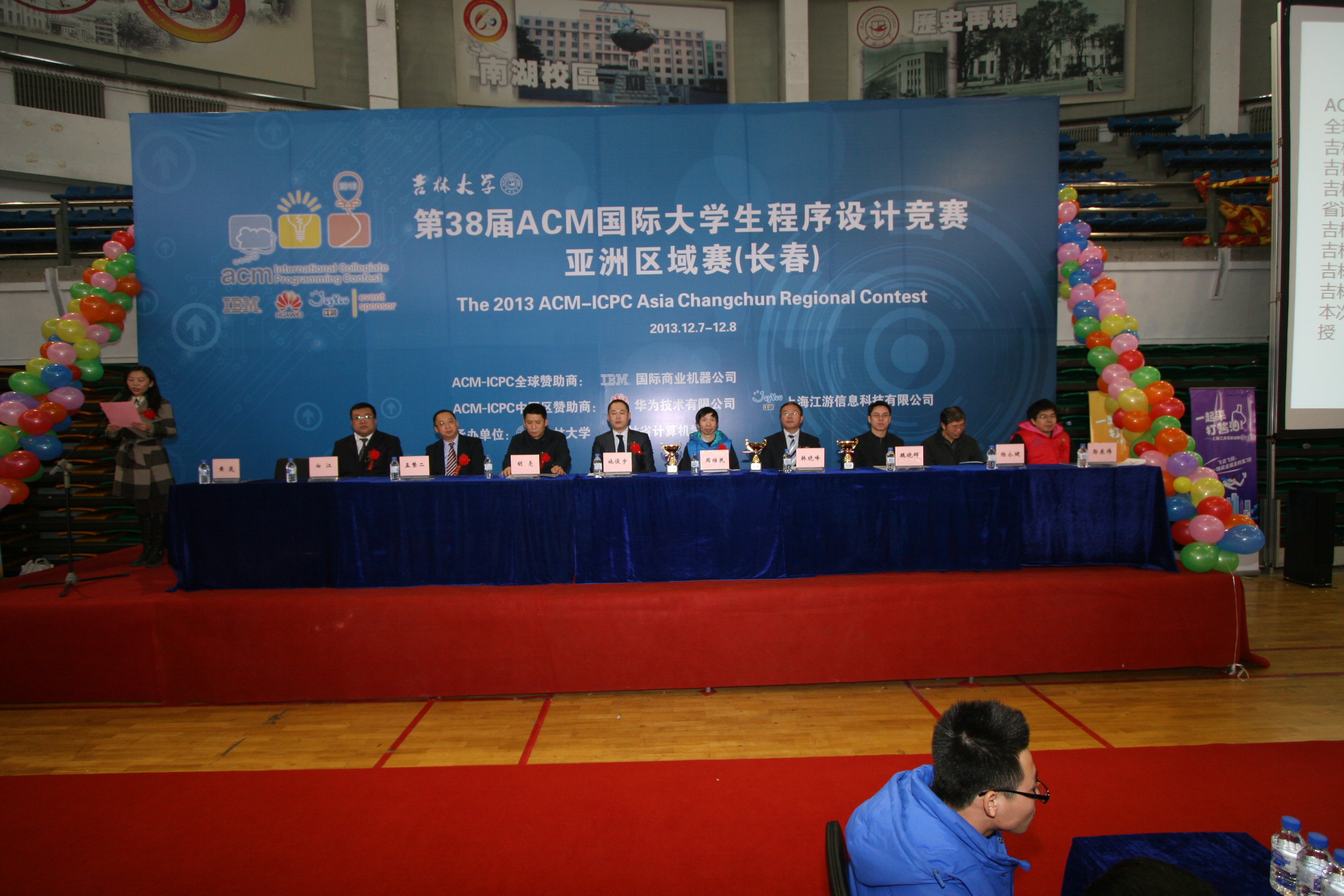 、吉林省计算机学会承办。竞赛吸引了北京大学、清华大学、上海交通大学、海南大学以及远道而来的成功大学、金日成综合大学等112所高校的181支队伍参赛。第38届ACM国际大学生程序设计竞赛(ACM-ICPC)亚洲区域赛共有5个赛区,成都站、杭州站、南京站、长沙站、长春站。长春站是第38届ACM-ICPC亚洲区域赛的最后一个赛区,是今年所有赛区中参赛高校最多的赛区。