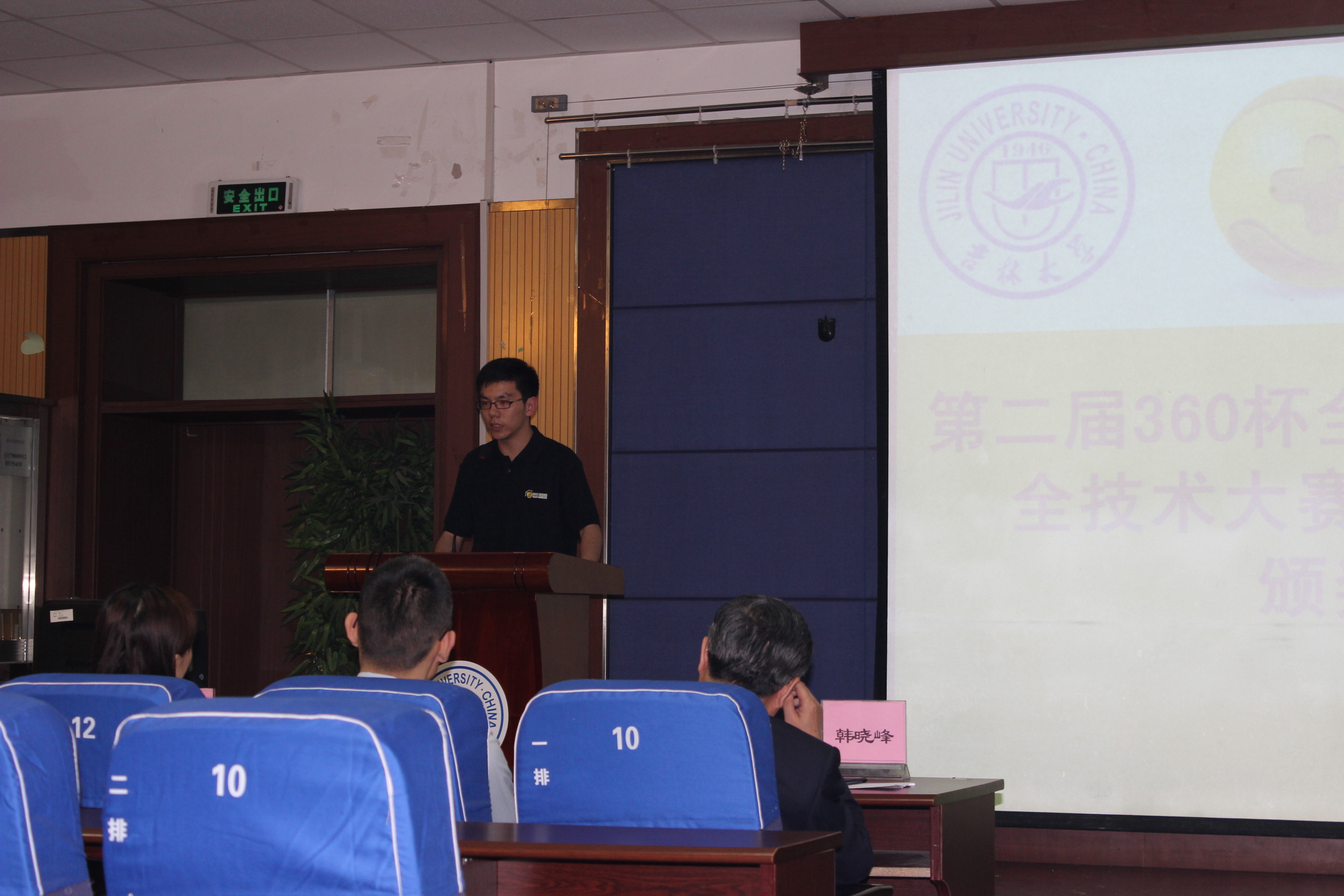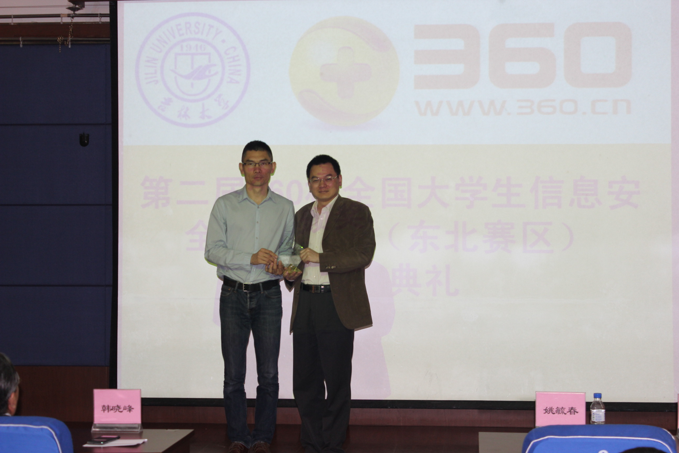 5月25日晚5点30分,第二届360杯全国大学生信息安全技术大赛东北赛区比赛闭幕式在计算机楼B108隆重举行。北京奇虎科技有限公司网络研究院院长宫一鸣先生、校园招聘经理刘鹏举先生、安全专家邓景毅先生和李斌先生以及自慰高潮