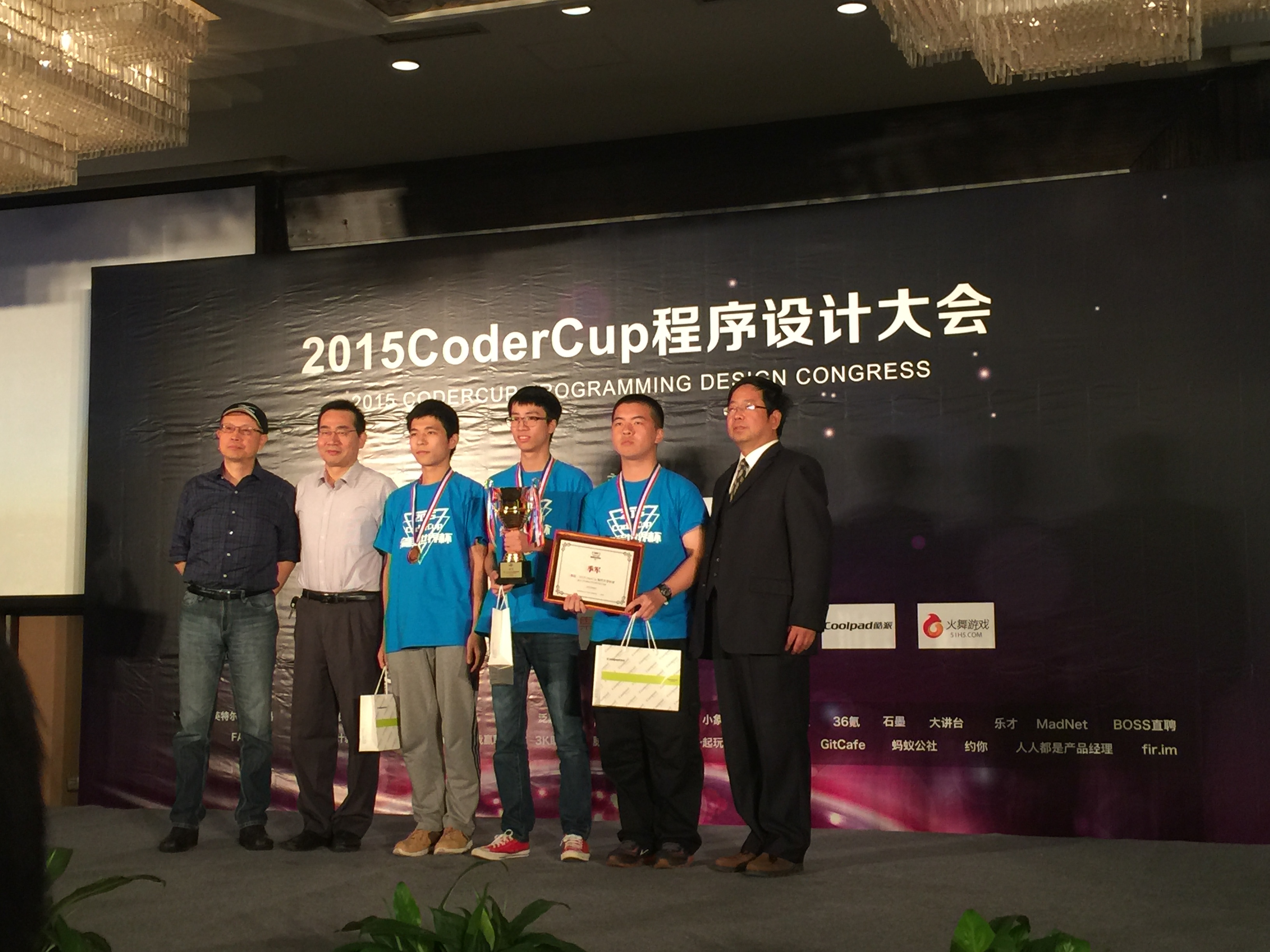 2015 CoderCup 编程大赛于2015年9月11日在清华大学举行,共有来自全国54所重点高校的78支代表队参加本次比赛。经过角逐,我校计算机学院15级本科生邵杰晶、13级本科生王心天和软件学院13级本科生郭兰哲组成的“三花聚顶”队获得季军。