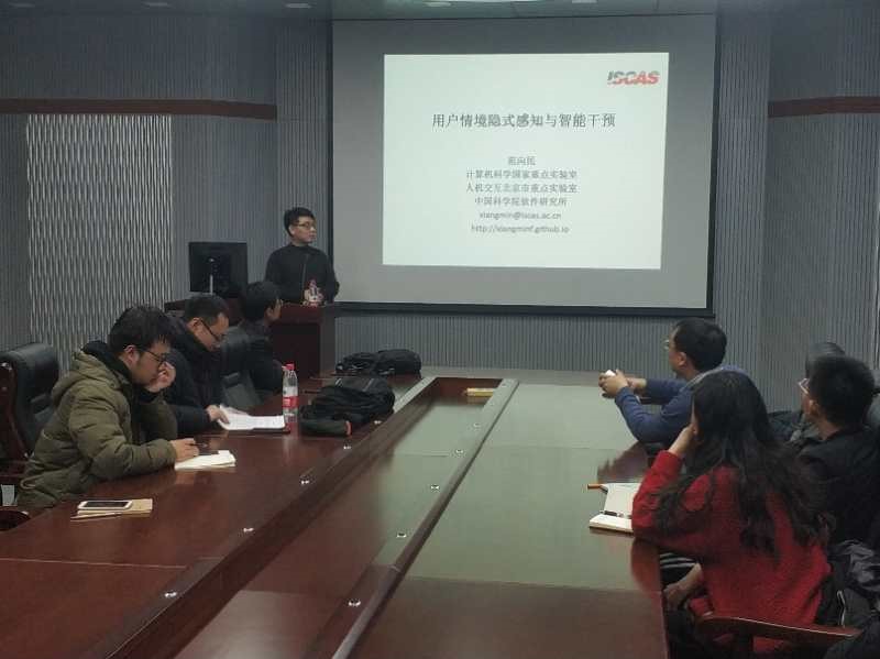 2018年12月22日上午,中科院软件所范向民副研究员应自慰高潮 邀请,在计算机楼A515作了题为“用户情境隐式感知与智能干预”的学术报告。