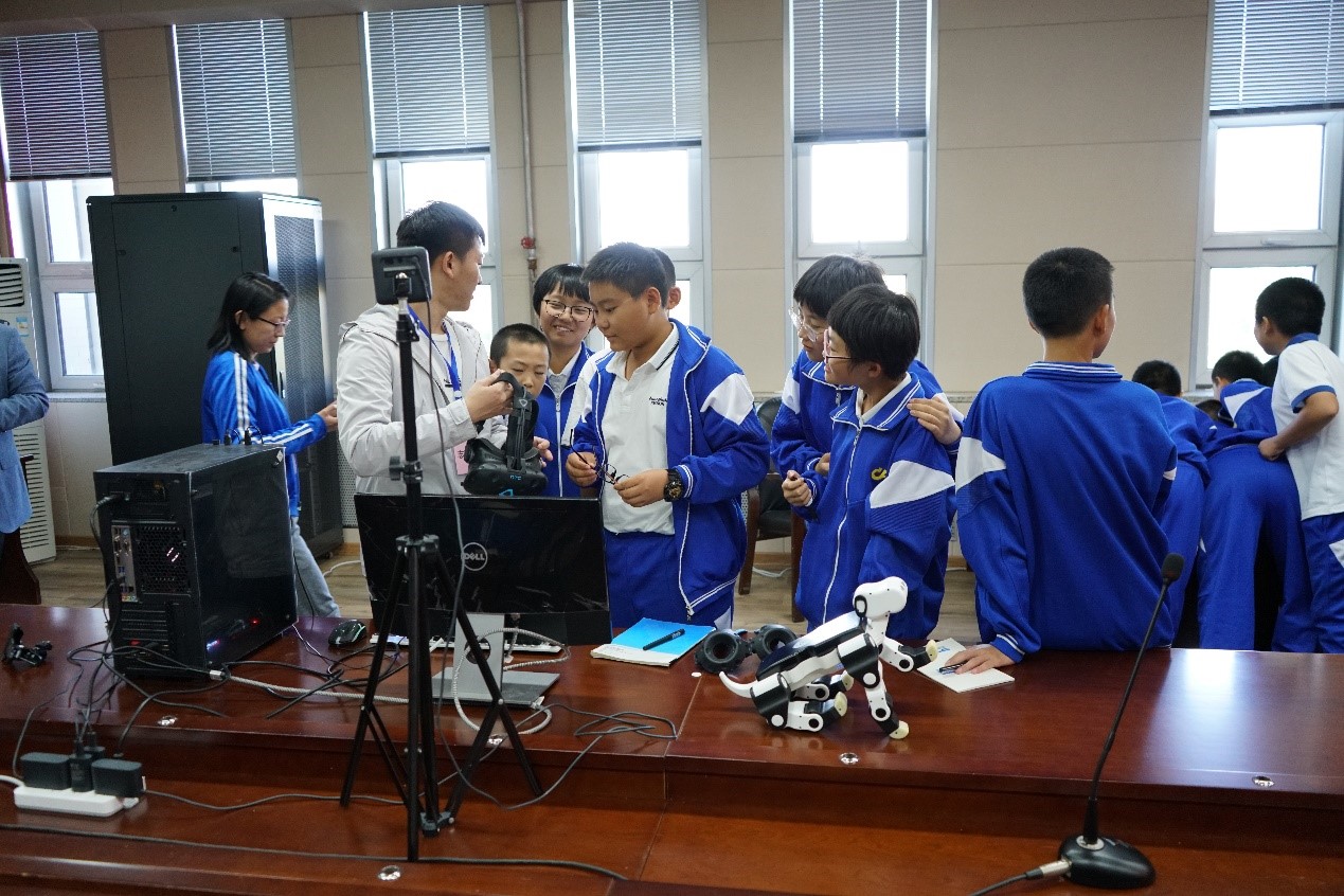 附属中学初一年级的近100名学生在杨槟老师的带领下全程参与了本次开放周活动。 本次科技开放日活动以“人工智能改变生活”为主题,设置了科普报告、机器人互动展示、实物与展板展示、实验室参观、讲解员讲解等各类活动,使同学们不仅了解了重点实验室的光辉历史,而且开拓了科学视野、近距离的接触了人工智能的最新研究成果。活动结束后,实验室领导与附中带队老师及同学们合影留念,同学们纷纷表示意犹未尽,希望以后能有机会多来实验室参观。