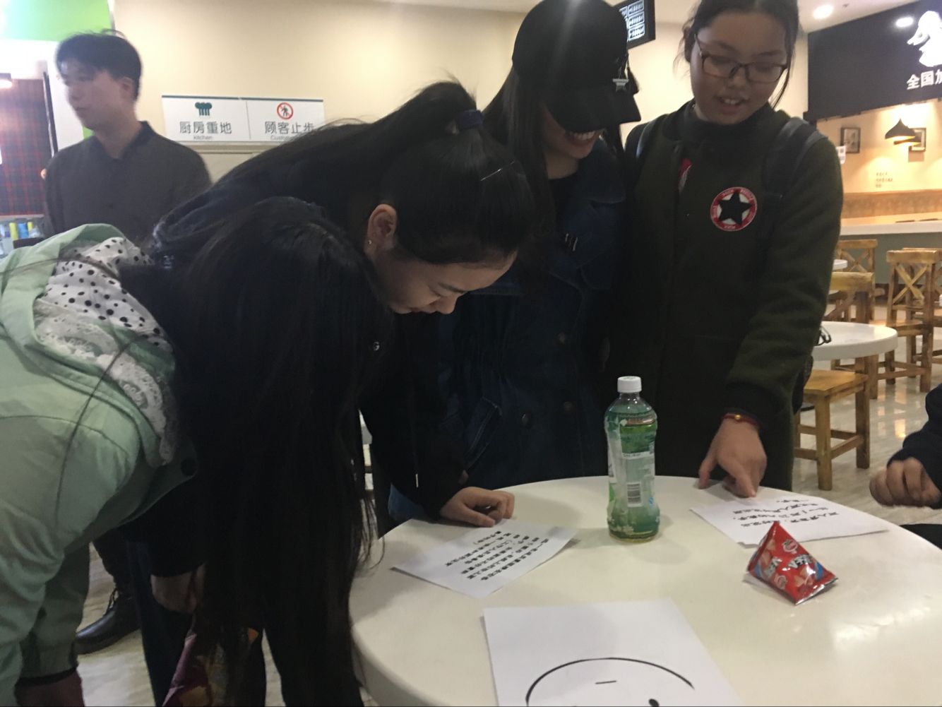 本次活动的起始地点为青湖。3时,主持人开始讲解活动的具体内容。同学们需要到日新楼,莘子园,新食堂三个地点,找到具有特征的工作人员,并且对上相应的暗号,完成工作人员指定的任务,方可获得带有汉字的零食。不同地点的人员有的字不同。只有集齐“女”“生”“节”“快”“乐”“!”这六种字并且回到起点,才算完成任务。
