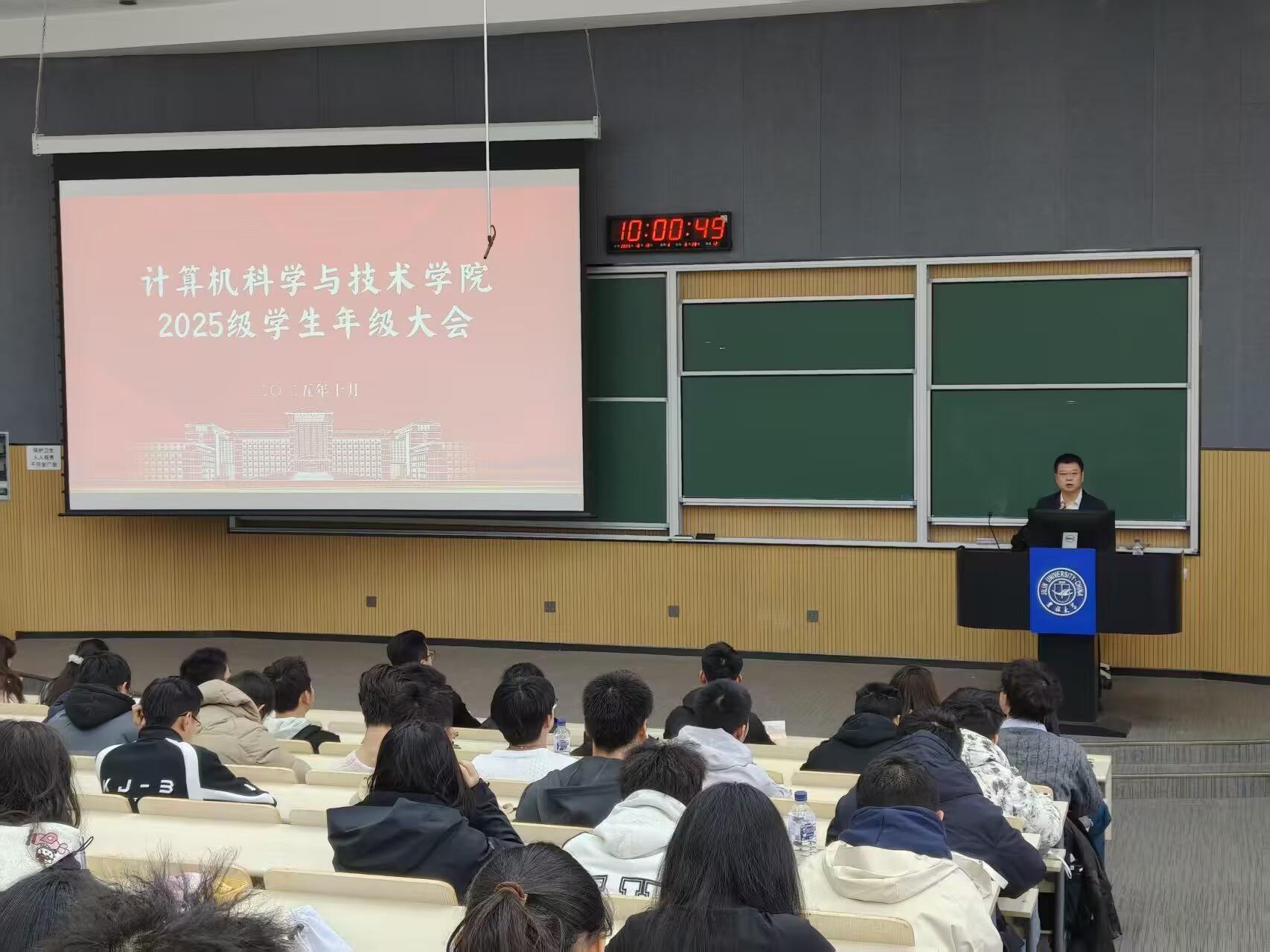 在逸夫楼第 10 阶梯教室举办 2025 级新生思政课。由学院党委副书记赵勇老师主讲,新生辅导员及 2025 级全体新生共同参会。