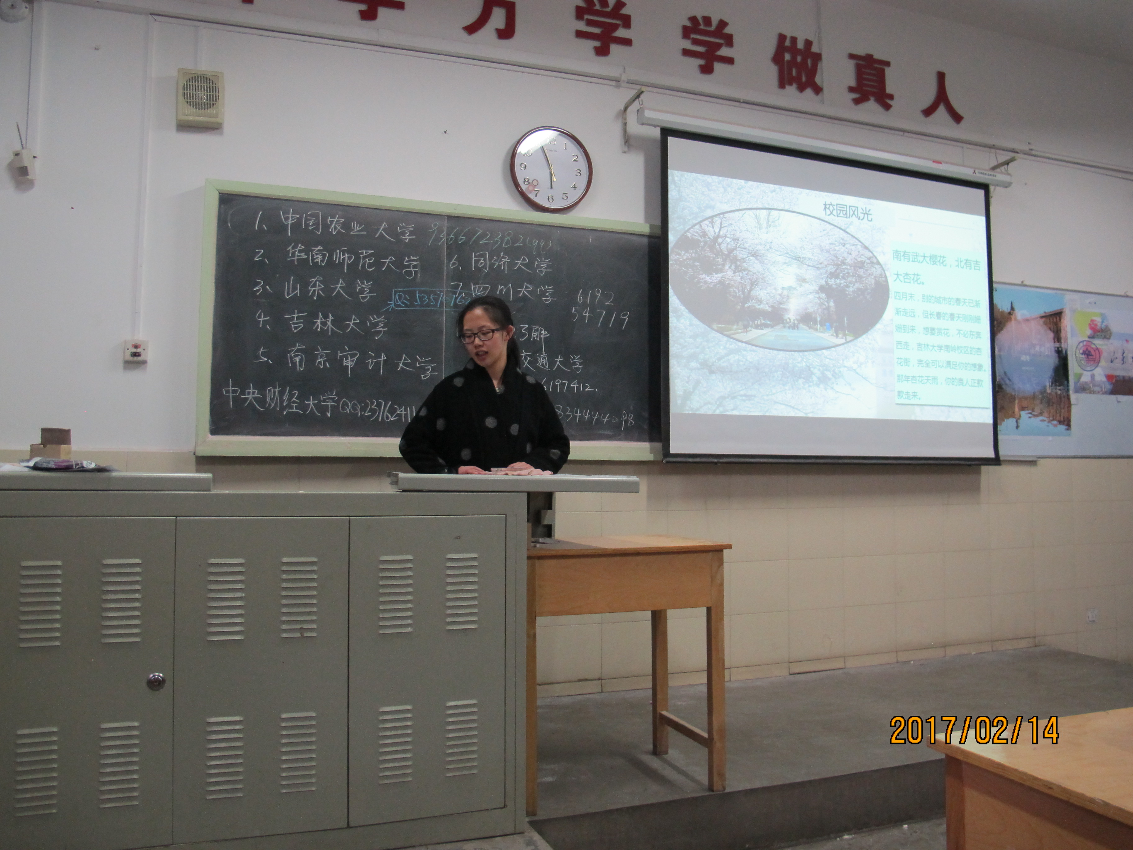 魏若荷同学等人主要就学校概况、师资力量和校园生活三个方面对学校展开了介绍。从学校概况中同学们知道了吉大历史悠久,从师资力量中他们知道了吉大学术氛围浓厚,从校园生活中他们知道了吉大学子的生活质量良好,这些详细的介绍使得同学们对于我校有了系统详尽的了解,看得出来他们对于报考自慰高潮
