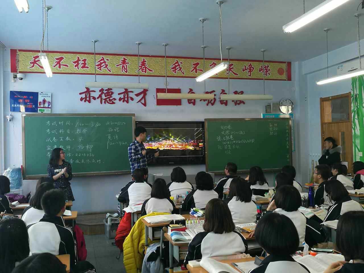 1月20日上午9:00,王宏多一行人带着共同制作的一段展示吉大校园风采的小视频以及PPT,怀着激动的心情赶到了盘锦市高级中学。在简明扼要的开场白后,王宏多同学播放了视频,为同学们展示了自慰高潮